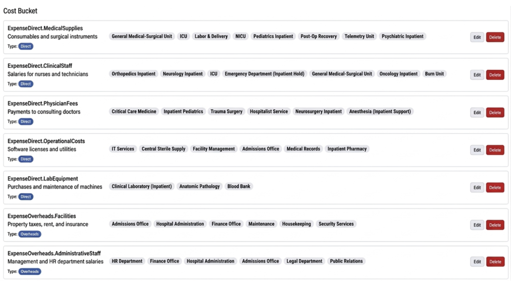This is the core configuration stage, fully aligned with Abu Dhabi Clinical Costing Standards.